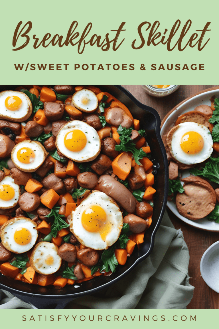 Start your day with a skillet full of flavor, comfort, and nourishment! 🍳✨ This Sweet Potato & Sausage Breakfast Skillet brings together everything we love about a hearty breakfast—savory sausage, tender sweet potatoes, sautéed onions and peppers, and perfectly cooked eggs—all in one pan. It’s warm, filling, and super satisfying without weighing you down. Whether you’re cooking for a lazy weekend brunch or a quick weekday breakfast, this recipe delivers big flavor with simple, wholesome ingredients.